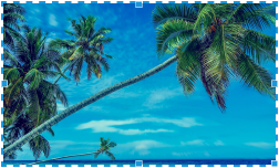 Durch die Bildeigenschaft Angepasst wird das jeweilige Bild soweit vergrößert oder verkleinert, dass das Element vollständig durch das Bild ausgefüllt wird (es wird überdeckt). Dies kann dazu führen, dass Teile des Bildes beschnitten sind und nicht dargestellt werden. Bei dieser Option treten keine "Balken" auf.
