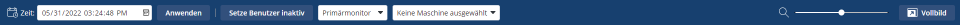 Mit der Zeiteinstellung kann das Aussehen zu einem bestimmten Zeitpunkt nachgestellt werden. So können zeitliche Anzeigebedingungen überprüft werden. Drücken Sie den Button Setzte Benutzer inaktiv, um den Inaktivitätsmodus (Bildschirmschoner) zu simulieren.