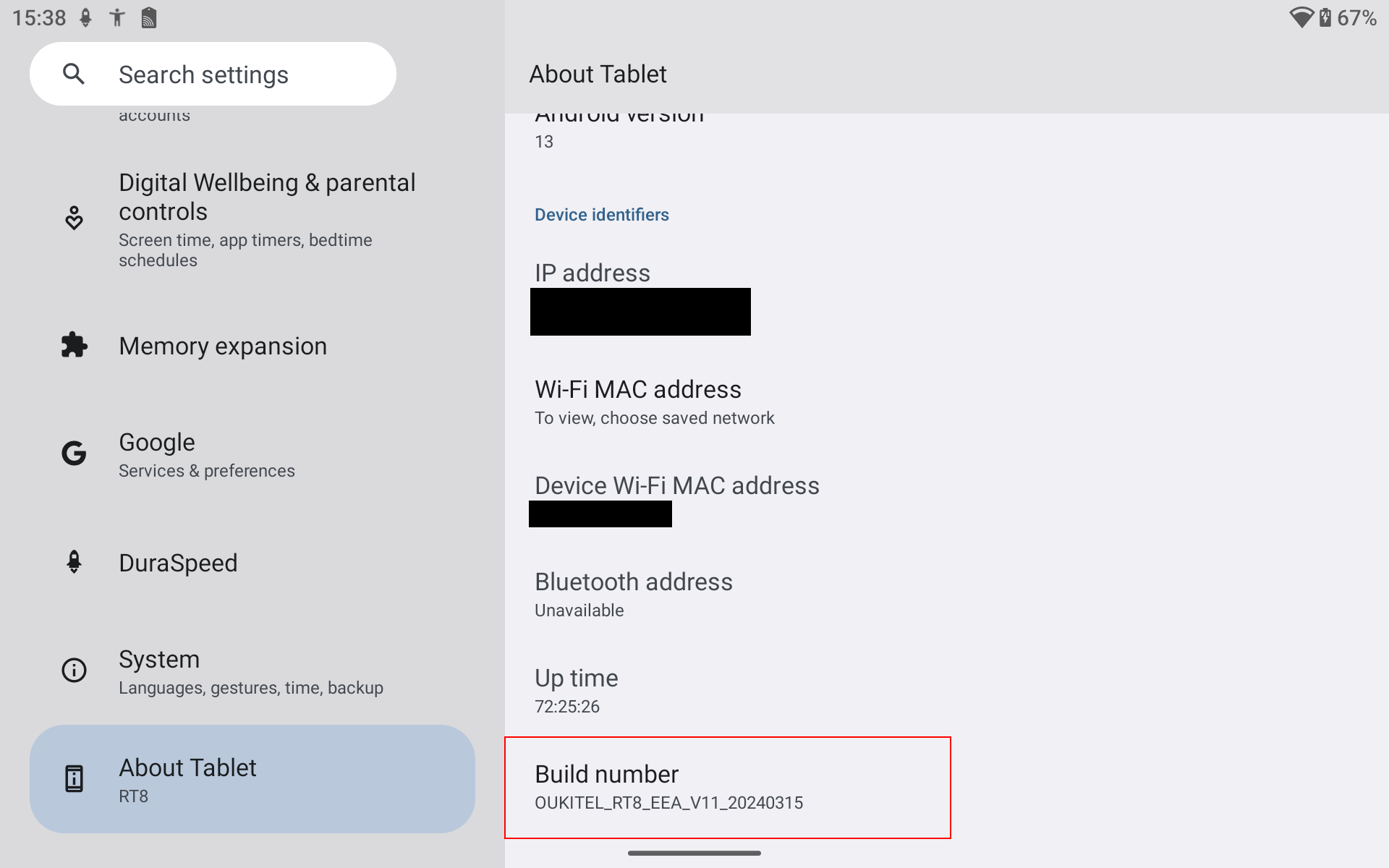 - Enable Developer options by tapping seven times on the build number under Settings > About tablet > Software information until a message confirms that you are a developer.