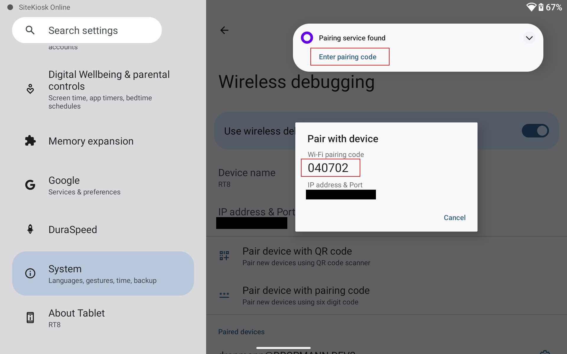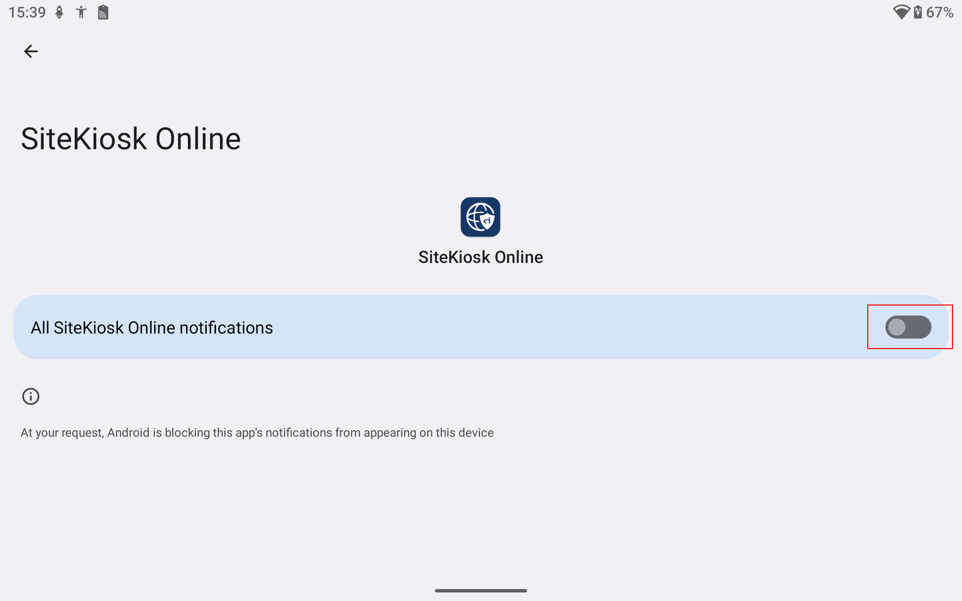 - Enable the notification option to allow pairing with developer options. This is necessary to install SiteKiosk Online.